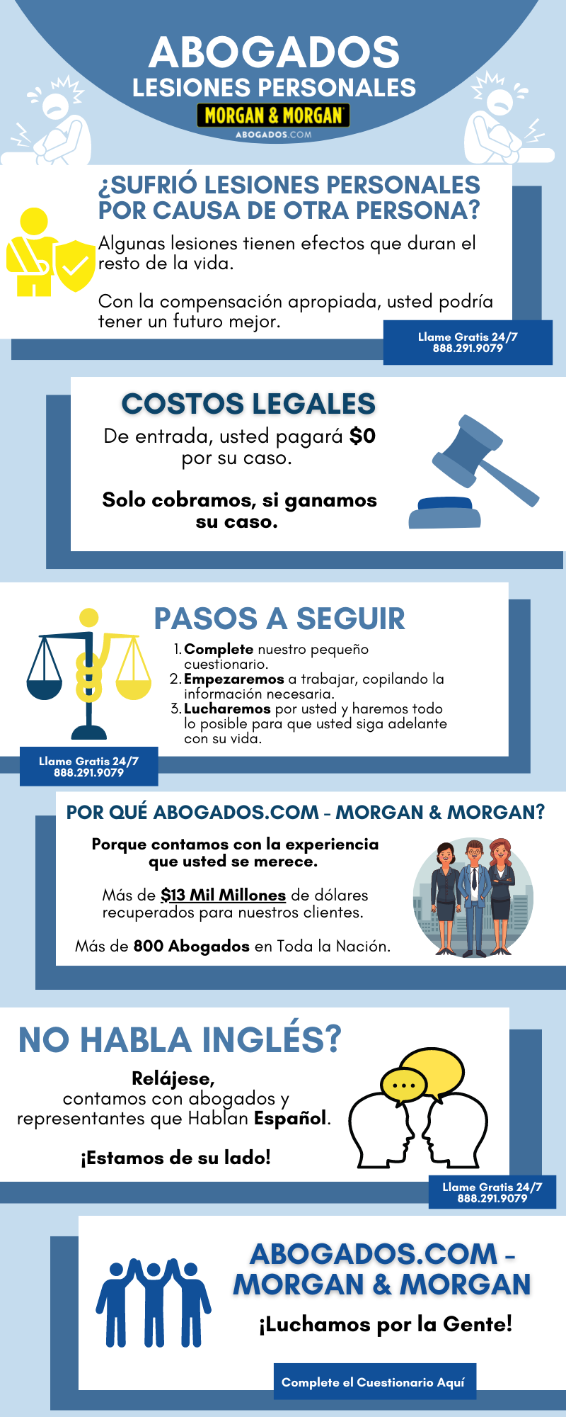 Si una persona o empresa negligente te hiere a ti o a un miembro de tu familia, todos sois víctimas de su descuido. Sin embargo, no tendrás que intentar responsabilizar a esas partes negligentes tú solo. Puedes contratar a un abogado con honorarios condicionales que, junto con su equipo jurídico, trabajará incansablemente por ti.